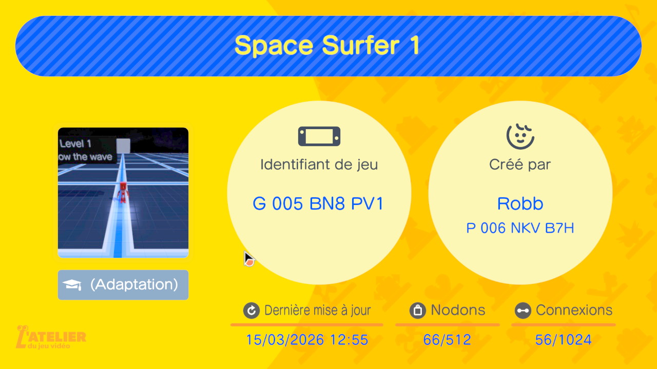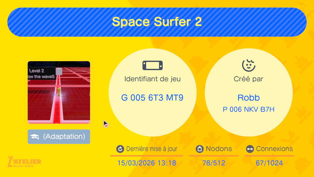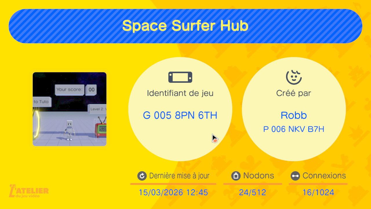 This game was developed using the game Game Builder Garage (l'Atelier du Jeu Vidéo in french) on Nintendo Switch (1 and 2): https://www.nintendo.com/fr-ch/Jeux/Jeux-a-telecharger-sur-Nintendo-Switch/L-ate...